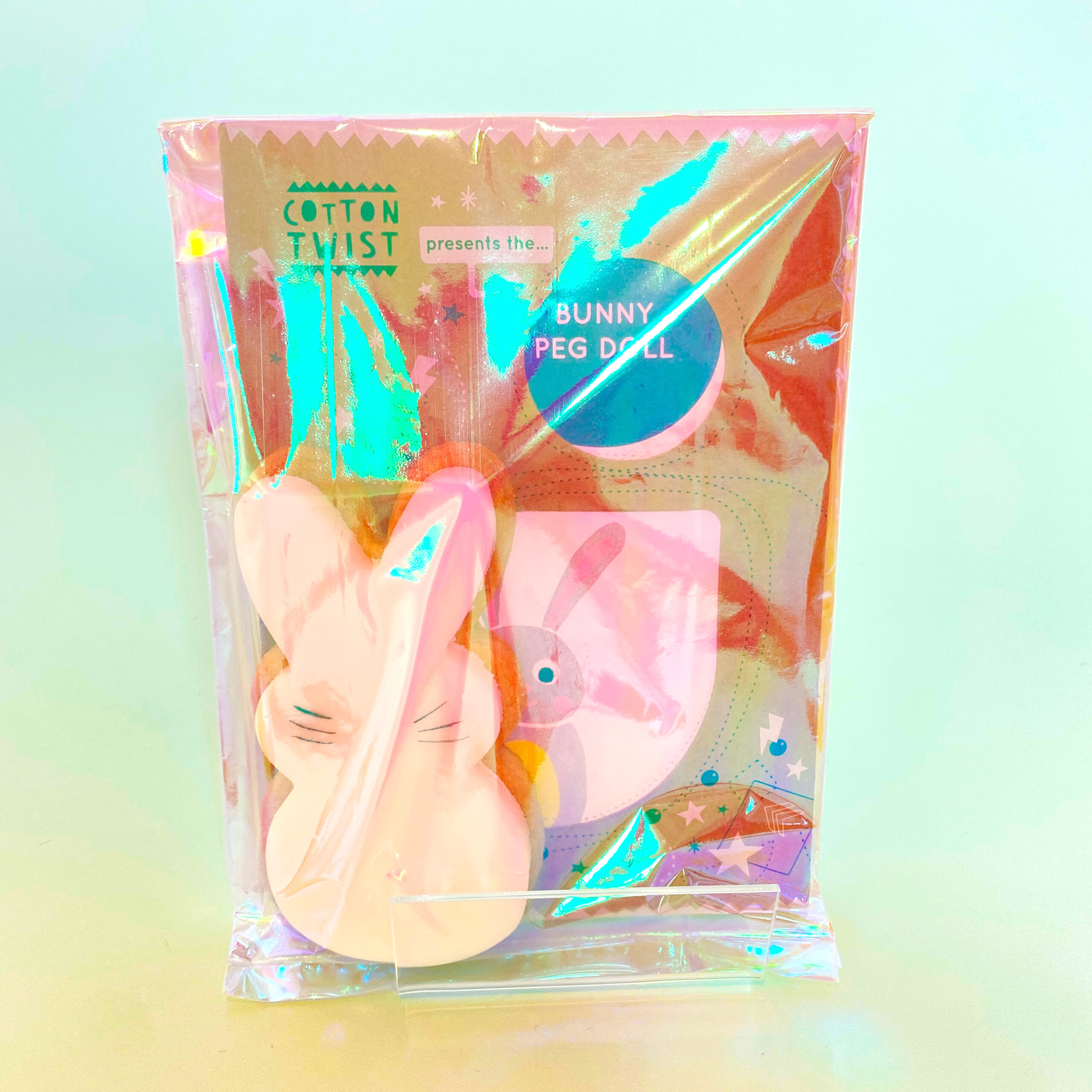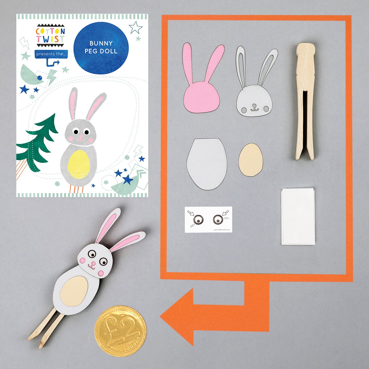 We have paired our Easter Bunny iced sugar cookie biscuit with Cotton Twist’s Make Your Own Bunny Peg Doll Kit.