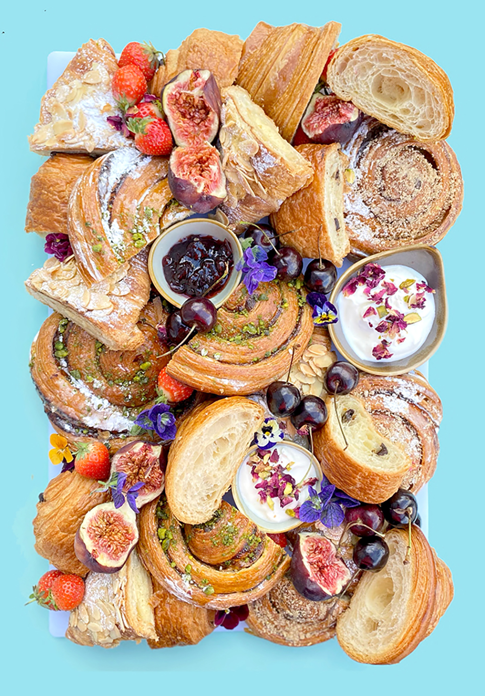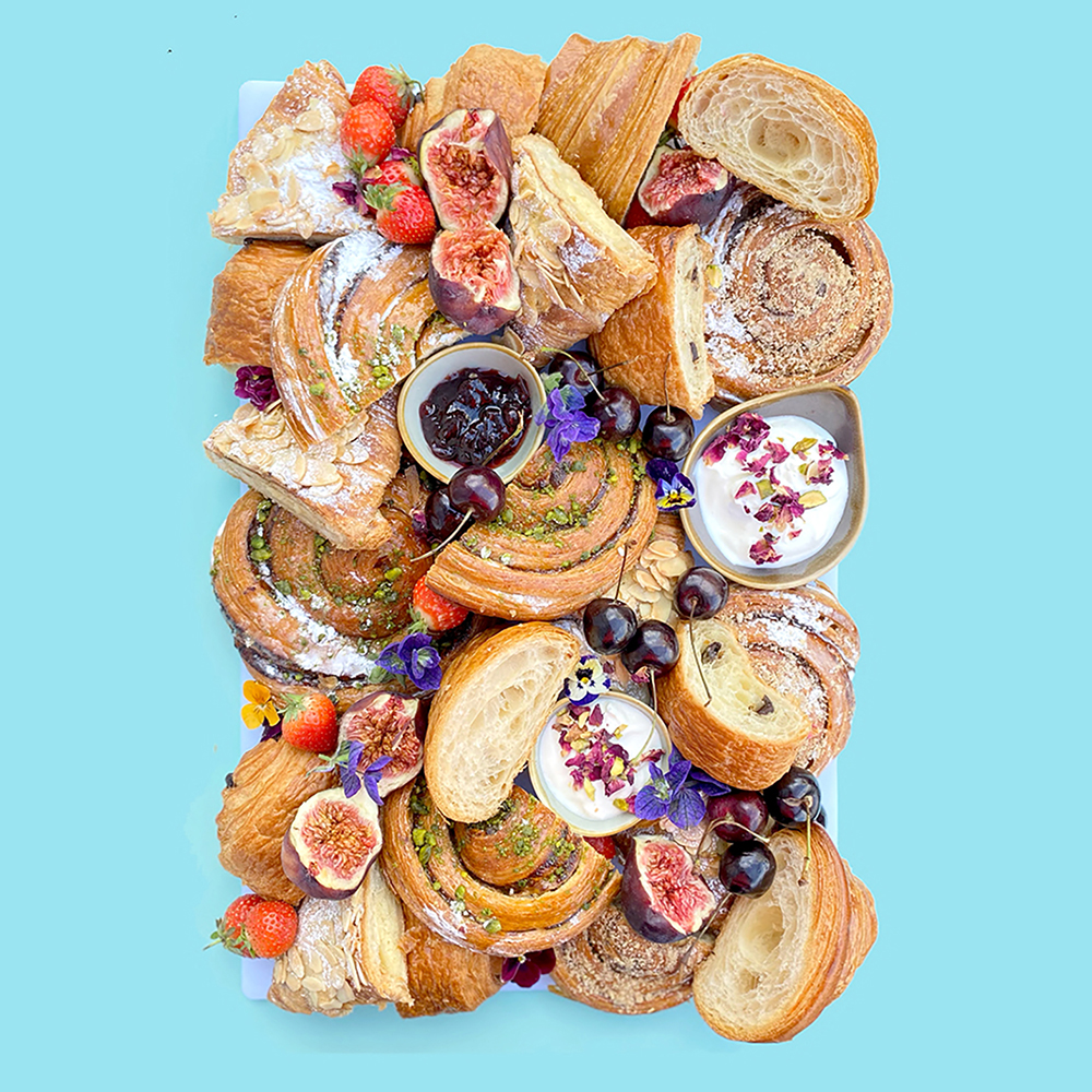 A selection of Pastries from Bertinet Bakery and fresh fruit, jam and natural yoghurt.